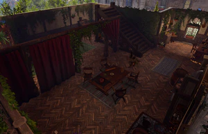 Elerrathin's Home[1] is a large private building located to the south-west of the Upper City Gate Checkpoint. Together with The Lodge and The Glitter Gala it lines up a small square with the statue of Balduran in the middle.