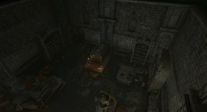 The aboveground to the mausoleum is through a locked gate beneath the graveyard's willow tree. A sarcophagus holds the remains of Lord Gregorian Gorion, First High Constable of Baldur's Gate. Gorion was known for his heroism, sage mind, and kind heart.