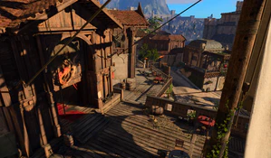 The only entrance into the tavern is from its "deck" at X: -142 Y: -98, which continues into wooden terraces lining the building from both sides.