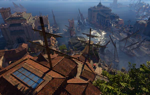 The Blushing Mermaid is a tavern in the Steeps district of Baldur's Gate, located to the south of Bloomridge Park and looking upon the Grey Harbour embankment. The building resembles an old seaship hulk, with its foredeck serving as outer terrace, and its stempost almost shooting out into the bay.[1]
