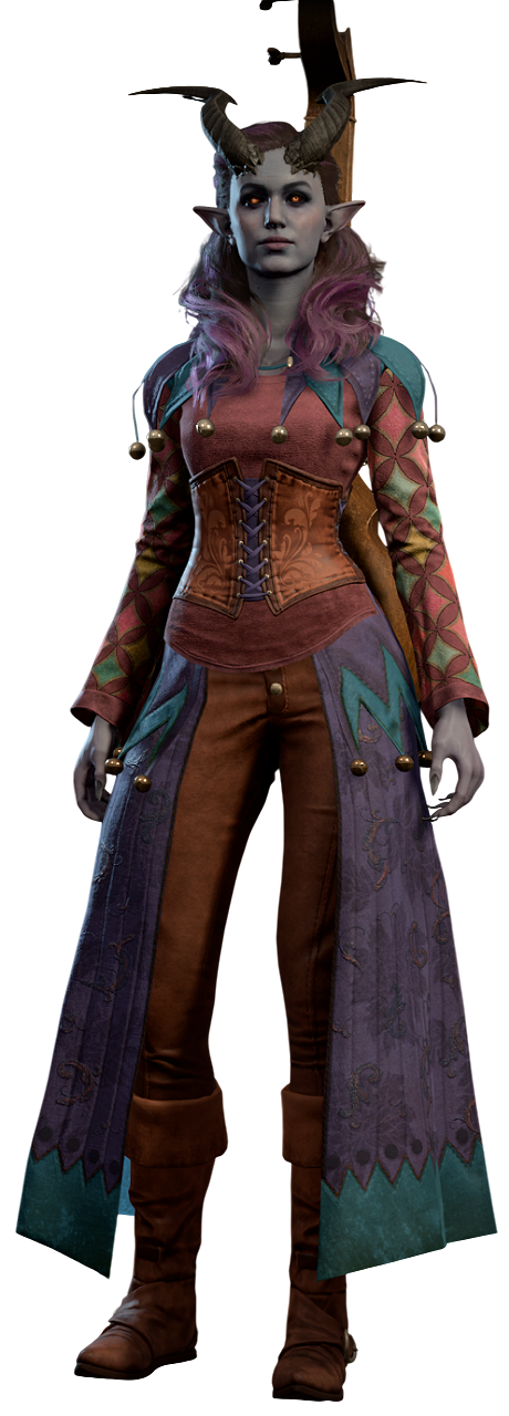 Alfira is part of the group of tiefling refugees who were exiled from Elturel, and Bardic apprentice to a woman named Lihala. On the journey to the Emerald Grove, they were attacked by gnolls and Lihala was killed. Alfira has since been trying to compose a eulogy for her.