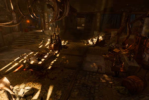 The Apothecary's Cellar is located underneath the Blighted Village, and is accessible from a hatch in the abandoned apothecary building.