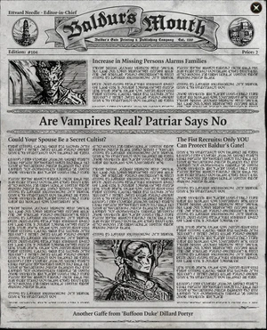 Baldur's Mouth Gazette is the only printed source of information for Baldur's Gate citizens.