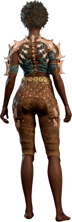 Sharp juts and knobbly nodules of bone stud this armour, as if something ancient sank its teeth deep into the leather and they got stuck there.