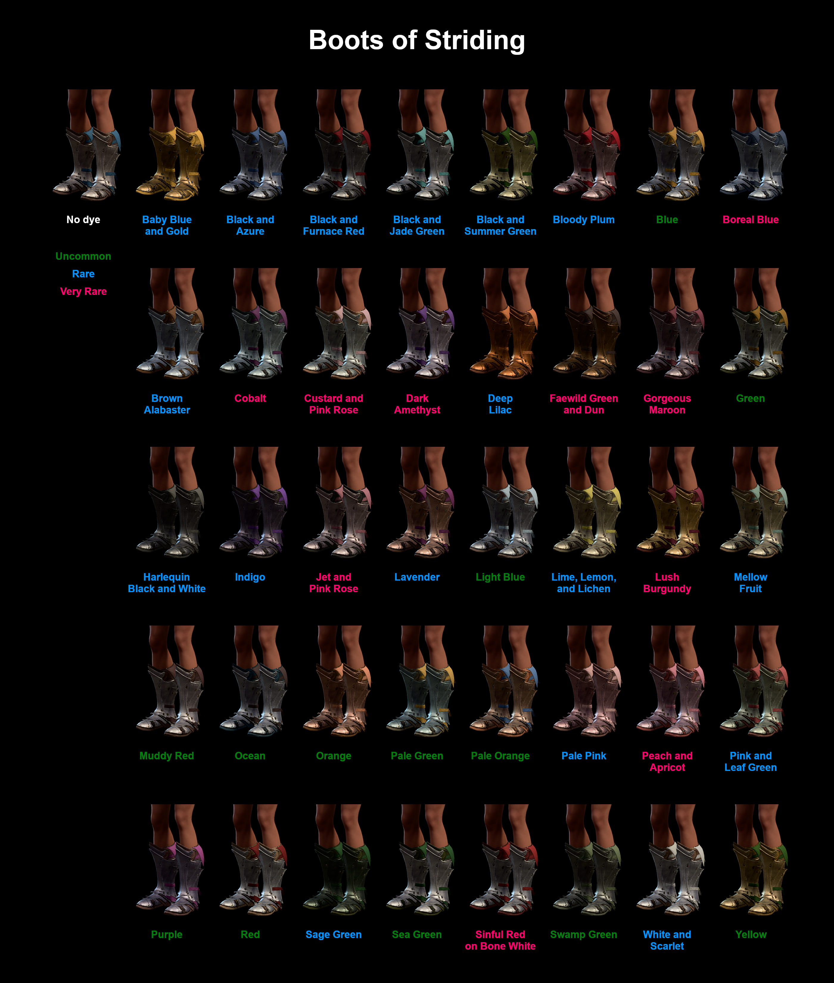 The Boots of Striding are an uncommon pair of Boots that grants the wearer a burst of speed whenever they begin concentrating on a spell.
