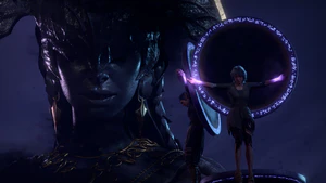 If Balthazar was not killed earlier, he will arrive in the Shadowfell immediately after the party, thanking them for their service in completing the trials. He floats ahead and instructs the party to come with him to witness greatness. Once the party leap to the heart of the Shadowfell, it is revealed that the Nightsong is not an object, but an aasimar woman named Dame Aylin. She has been held captive by Ketheric Thorm using the power of Balthazar to share her immortal life with him.