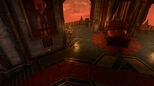 Once inside, the party must pass a DC 15 Deception Check to get the Archivist to fully believe the ruse. Unfortunately, the Archivist cannot give access to the contract, as it is surrounded by an impervious sphere; it requires a magic code that only Raphael has. Instead, he advises the party to wait in the Boudoir until Raphael returns. The Archivist can also relinquish the pass to the Boudoir by passing a DC 25 Intimidation Check, or by pickpocketing him.