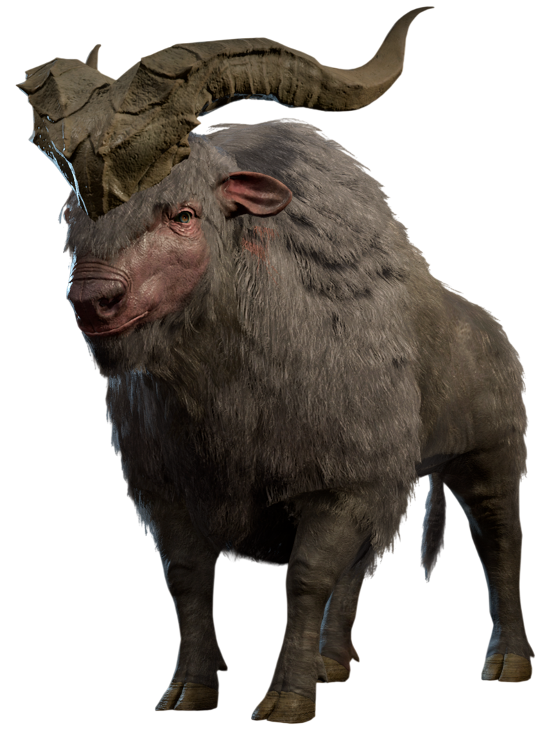 Deep Rothé[1] are common beasts in Faerûn, mostly used as a beef breed and beasts of burden; one of the common supplies that the party may find around or buy from traders throughout the game is Grilled Rothé Ribs. Deep Rothé are a sub-species of common Rothé, adapted to live in the Underdark. Rothé much resemble herd beasts like musk-oxen or yacks in appearance and probably share similar their temperament and behaviour.