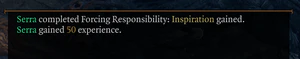 - ↑ If the lead player character is the only member in the active party roster when experience is earned from completing a background goal, all other companions also realize this gain upon (re)joining the party later on.