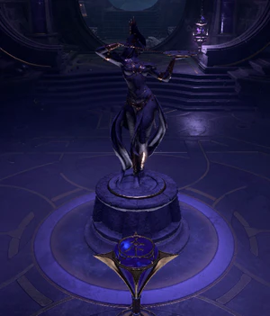 Just inside the entrance is a statue of Shar with a pedestal at its feet, surrounded by a circle of purple-glowing glyphs. The pedestal is called an "Umbral Gem" and serves to unlock the door to proceed further in the dungeon. However, it looks different from the Umbral Gems which are needed to reach the final part of the Gauntlet, being a visual copy of the Orb of Darkvision which can be found in the Grymforge in Act One. Likewise, it cannot be picked up, but only interacted with. Shar speaks directly through the statue, inviting the party to take on her trials and prove themselves worthy. However, directly approaching the statue triggers a hidden forcefield, which pushes the party members away and knocks them down.