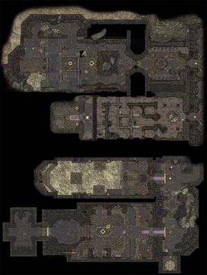 To progress through the dungeon, the party must solve a number of puzzles and encounters. However, the layout of the dungeon is fairly open-ended past the entry chamber and can be completed in a variety of ways, including entering it multiple times. No parts of the dungeon are restricted from fast travel and resting, except the Trials of Shar after entering the doors of those chambers. The dungeon has its own Waypoints (one past the entrance hall and another one before the descent into the Shadowfell).