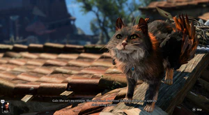 The party must go to the kitchen of the Open Hand Temple and exit out of the north door to the outside, then head east and around the building, where there are vines that allow roof access at X: -50 Y: 11. The culprit, a Tressym, is on the rooftop at X: -45 Y: -4 in a nest of pigeon remains and the pilfered letters. A successful perception check notes that this particular Tressym has Gale's collar on her, revealing her identity as his friend, Tara.