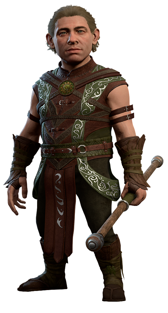 Harper Freddo is a lightfoot halfling druid and a member of the Harpers in Act Three. He joins Jaheira in the battle against the Dark Urge, should the latter choose to accept and embrace their heritage.