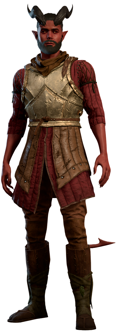 Gerson the Bent is a tiefling at the Emerald Grove during Act One.