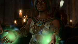 If informing her of the various symptoms the party have been experiencing, then Nettie is honest in kind. She does not have a cure, and was instead planning to euthanize the party before they can transform. Nettie then offers to let the party go free if they swear to consume a Wyvern Poison to kill themselves at the first signs of turning. If agreeing and swearing to Nettie's demands, she informs the party of the current situation in the Grove and urges them to Rescue the Druid Halsin. If refusing to swear, she attacks in hopes of stopping the party before they transform and harm others.