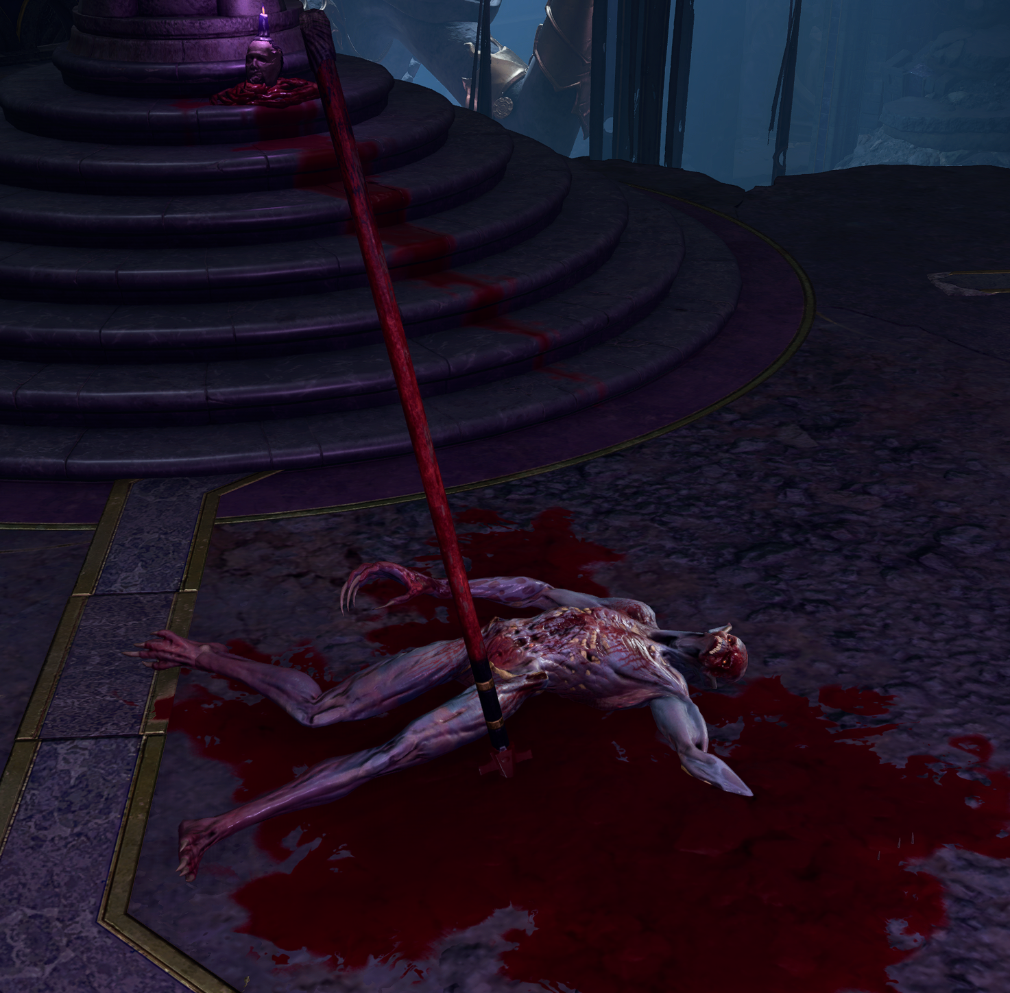 Ghoul Scouts are undead servants of Balthazar. One dead scout is located just in front of the Soft-Step Trial in the Gauntlet of Shar.