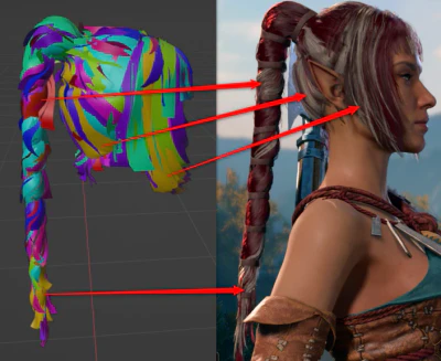 If you want to edit one of these hairs to create a custom hairs, simply visit the .GR2 file path and import your preferred hair into Blender using BG3/DOS Collada Exporter plugin.