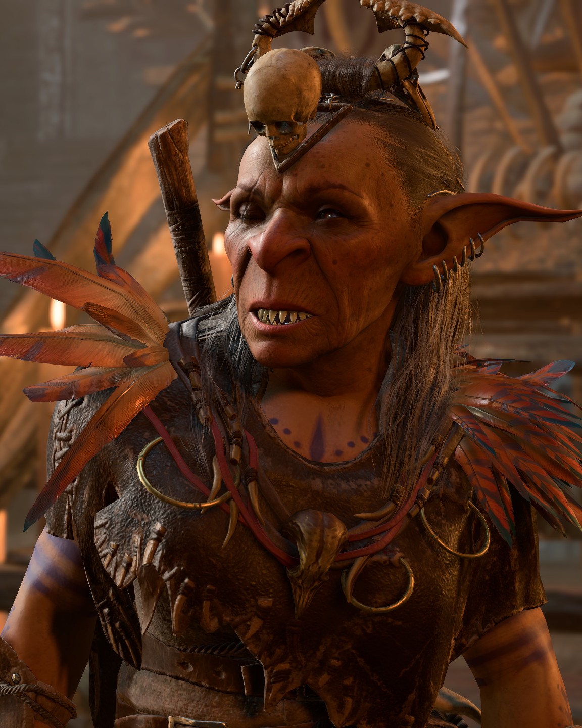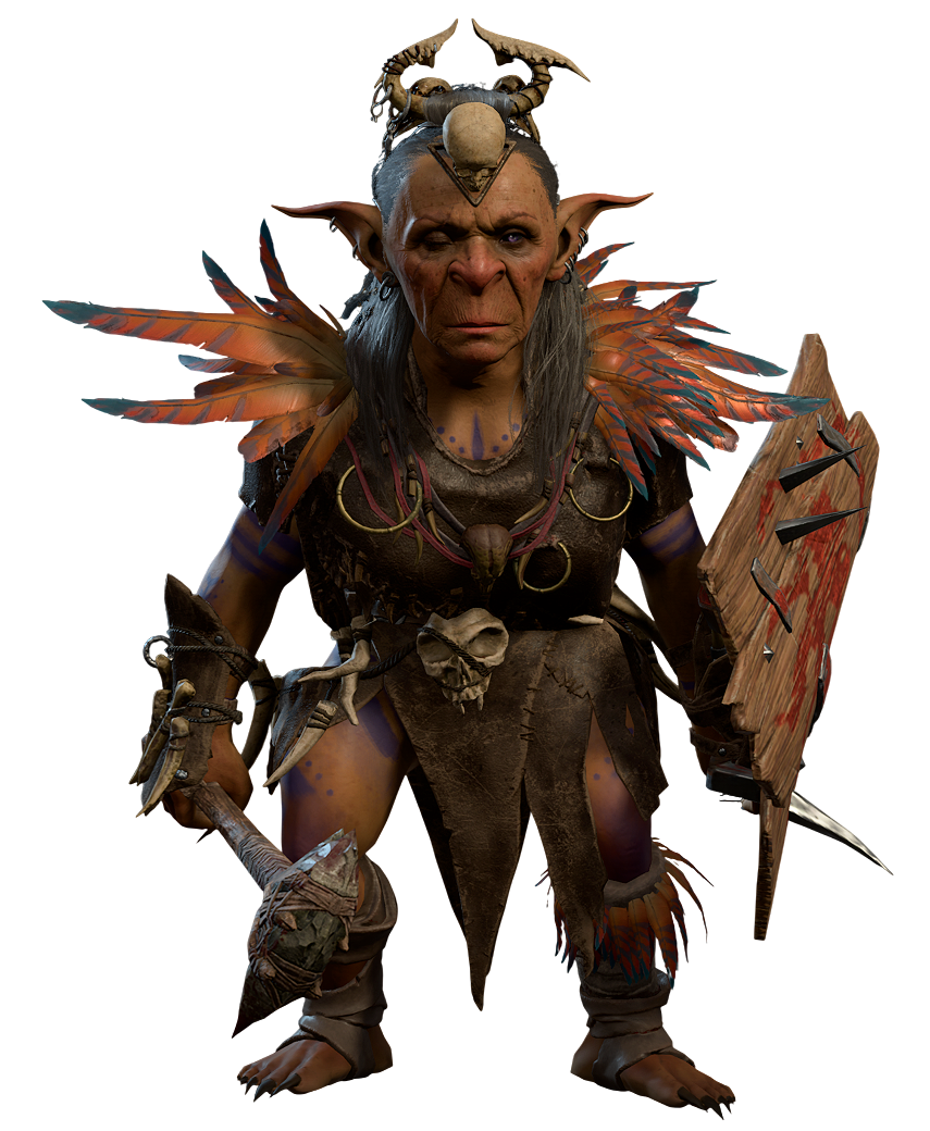 Priestess Gut, also known as True Soul Gut, is a goblin True Soul and follower of The Absolute stationed at the Goblin Camp in Act One.