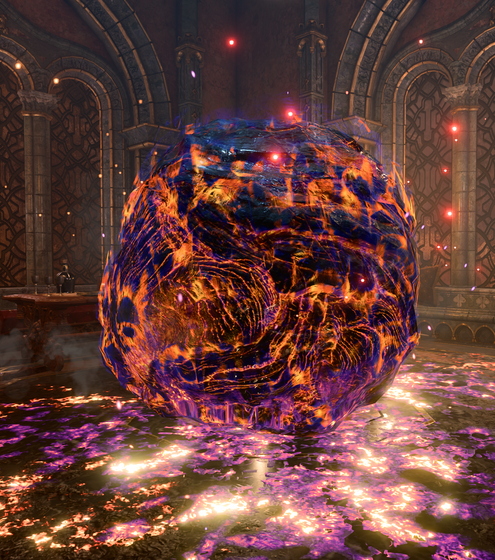 Two Hell Spheres are summoned when the party trigger the alarm within the House of Hope; they accost the party until defeated.