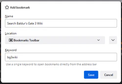 - Keyword: The keyword you'll enter in your address bar to trigger a bg3.wiki search.