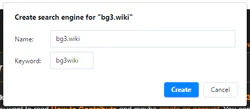- Enter the following details in the Create search engine for "bg3.wiki" box that appears.