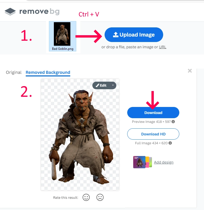 It is sometimes necessary or desirable to remove the backgrounds of images, for example when creating character model images from statblocks. If you do not have access to or experience with more powerful tools like Photoshop, there are two simple and free options: