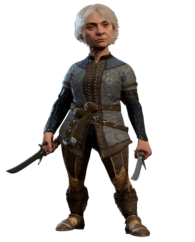Hemm, disguised as Harper Chelvin, is a Doppelganger posing as an elderly lightfoot halfling member of the Harpers. Originally on a mission to look into Bhaalist activity in the city and to find the whereabouts of the Mad Rashemaar, Chelvin was killed and impersonated some time ago.