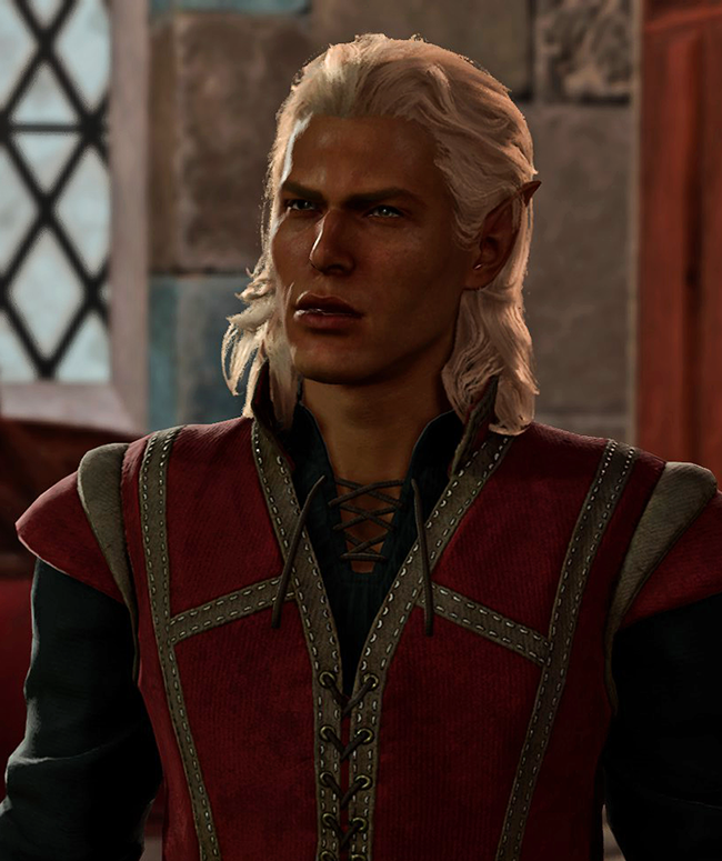 Legarioll stands in line waiting his turn to get serviced by Clerk Zollerix, an employee of the Counting House who appears to be very busy. Legarioll snaps at the party if spoken to, ordering them to stand at the back of the line.