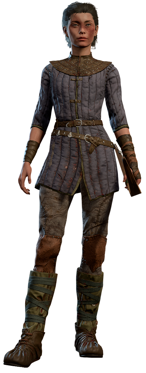 Mari is the group's lockpick and has been trying to break into the crypt for days alongside her friend, Barton. She is alert and suspicious, like the rest of the crew. If opening the door she is trying to lockpick, she is surprised and questions it (even when Barton tries to dismiss it). If letting the masonry stone fall through the roof, she is easily spooked from it. She is more loyal than the rest of her group, and reacts emotionally and becomes enraged if she finds Barton dead.