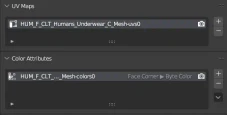 If you wish to combine two meshes for whatever reason, remember that each mesh will have its own name for the UV map and colour maps.