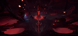 After the cutscene with either Lae'zel or Losiir, the party automatically moves to the next room, where three Lesser Imps must be defeated.[2] Among the loot are common ranged weapons which can be quite convenient for starting characters. There is a restoration pod at the northern side of the room before a stairway which leads up towards the ceremorphosis chambers.