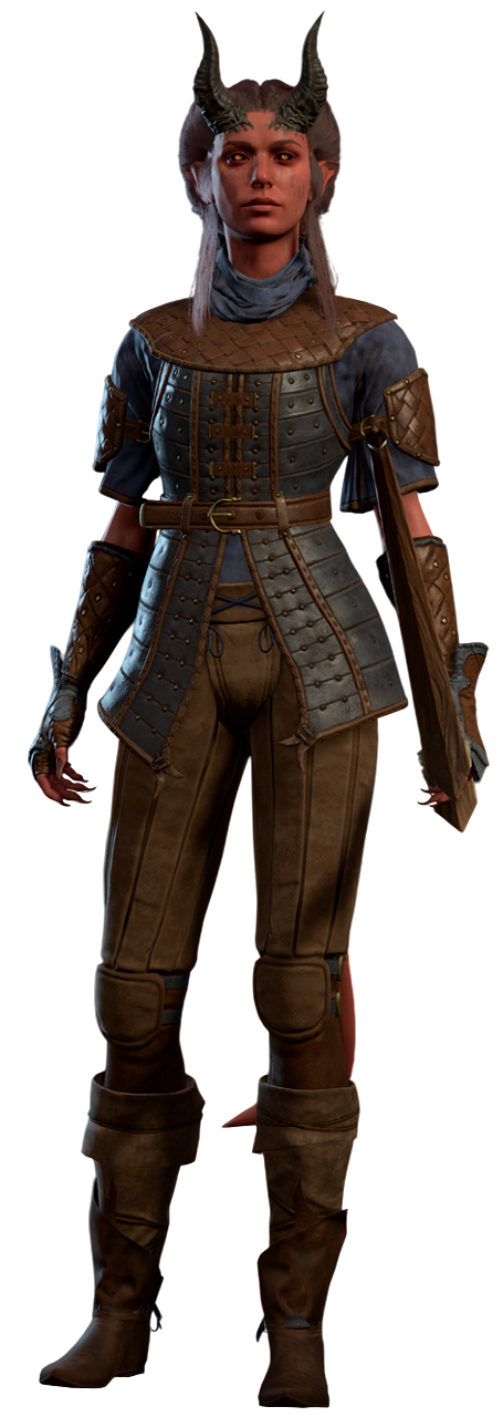 - Naysa wears a set of armor identical to the Studded Leather Armour set, but with shorter sleeves and a scarf covering the collar of the outfit.