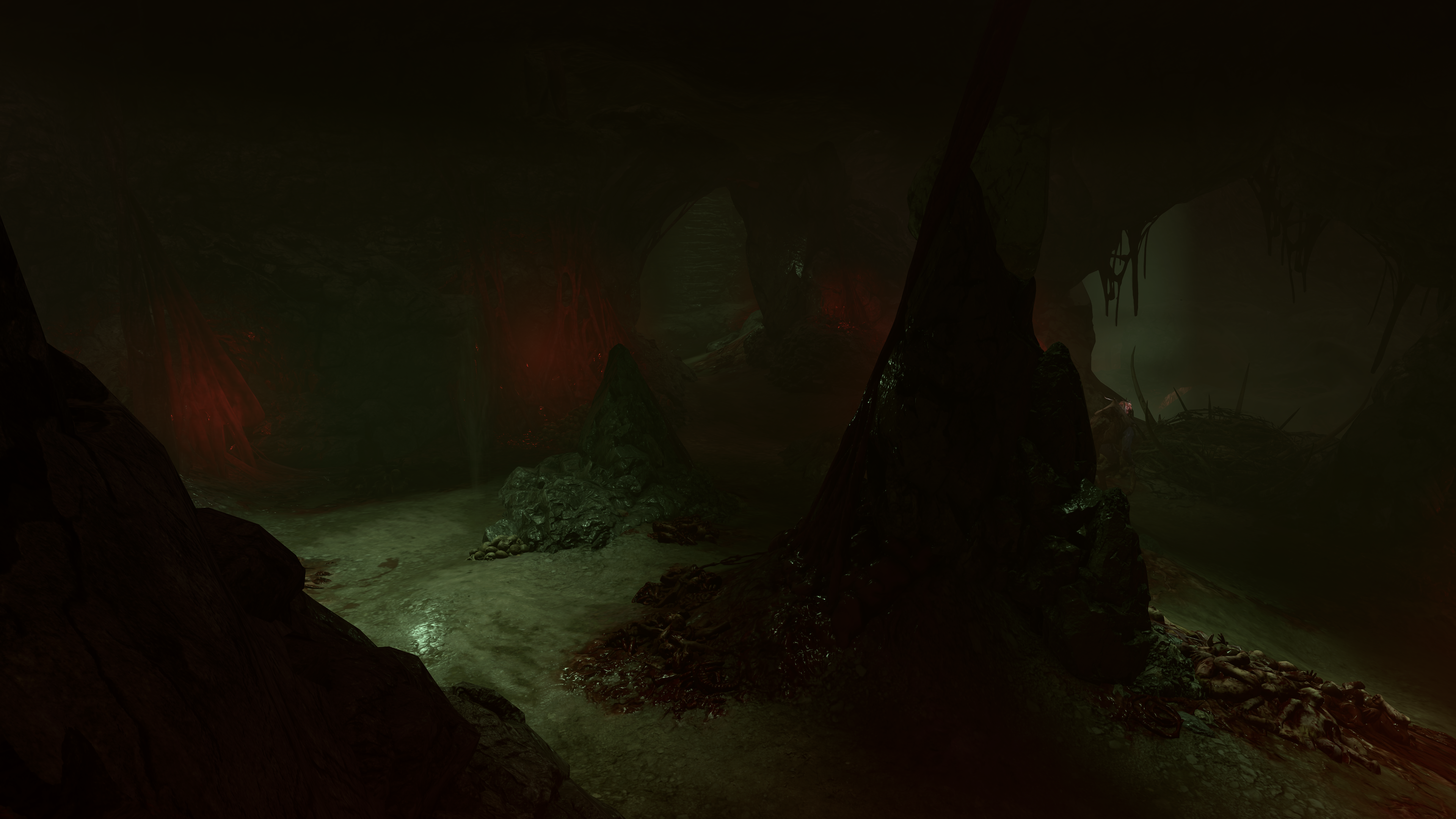 Most of the ways to enter the oubliette let the party land in the main chamber. It is an area filled with viscera and blood. On the northern side of the chamber is a hidden area, closed off by destructible membranes. Within lies a dead Goblin named Vermit (around X: 639 Y: -79). The party can commune with him using Speak with Dead, revealing him as a former True Soul. He sheds light on the true fate that befalls believers of the Absolute who 'ascend'.
