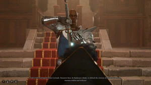 In Act Three, Duke Ravengard is encountered once again after completing Find a way into Wyrm's Rock fortress. Once the party enter Wyrm's Rock Fortress, Gortash takes control of a Steel Watcher and invites the party to his coronation. Ravengard is in the Audience Chamber with Gortash and officiates Gortash's swearing in as Archduke of Baldur's Gate. Immediately after the ceremony, Ravengard can be spoken to.