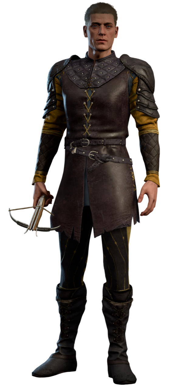Rugan is a human Zhentarim agent who can be found trapped in a cave on the Risen Road, desperately trying to fend off Flind's gnoll pack.