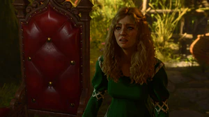- ↑ One way to manipulate which party member she talks with is to cast silence on her, and have all but the party member chosen to talk with her gathered within the silence bubble. This forces her to leave the silence bubble in order for her to talk and also forces her to speak with the only party member who is not currently silenced. It is recommended to use Karlach (or a high charisma Barbarian) for this check, as she has high intimidation and a dialogue option unique to barbarian that gives her advantage on the check.[verify]