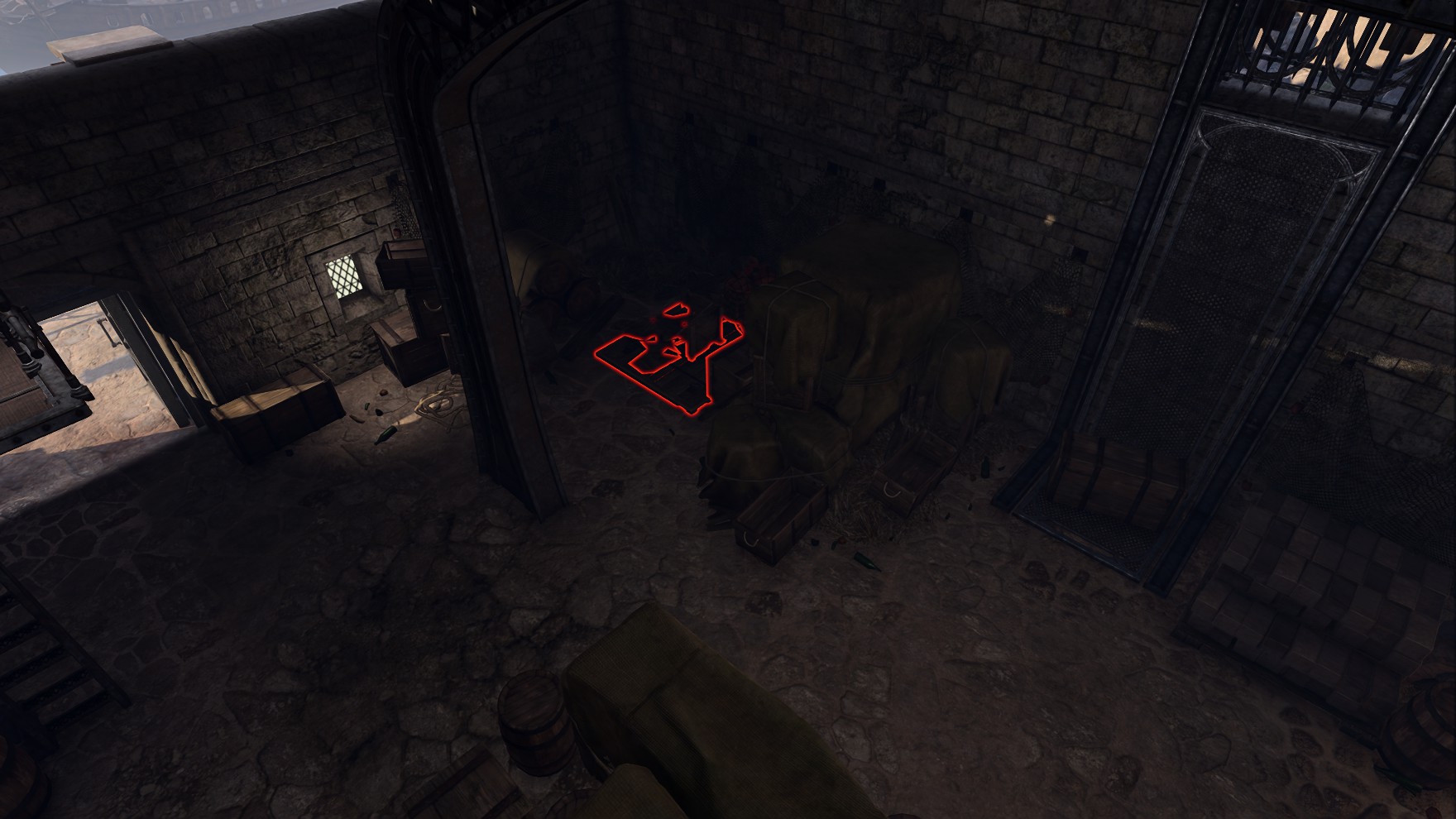 - Flying onto the roof and jumping down from an open hatch at X: -295 Y: -135