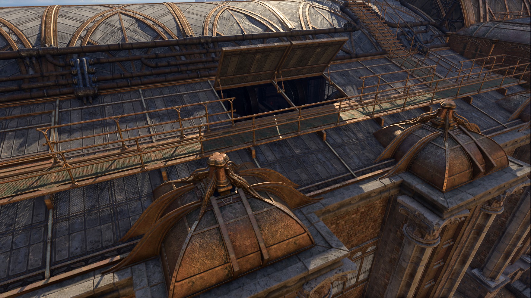 There are two Steel Watchers guarding the front entrance - one which patrols the front and western side of the building, and another which stays on the western side near the loading dock. The Steel Watcher patrolling the front can easily be avoided by lockpicking the front gate and enter the front door while the Watcher is on the western side.