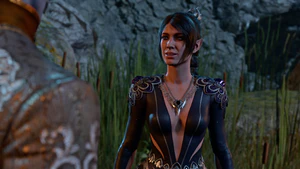 - ↑ In some conversations at camp, companions such as Astarion may comment on Shadowheart's appearance and desire for physical contact with her, or express their agreement if the player character says they feel the same.