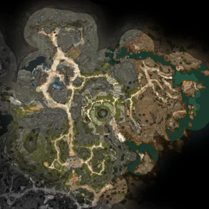 The Sacred Pool lies in the heart of the Emerald Grove. It occupies a basin north-west to the Hollow and provides access to the Inner Sanctum via the stone door at X: 25 Y: -10 and to the Secluded Cove via a path to the northeast. At its southern side, an elevator leads to the Emerald Grove ramparts.