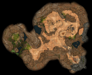 The Tiefling Hideout is a subterranean cavern hidden under the south-western part of the Hollow. It is occupied by Mol and her tiefling children gang,[1] who use it as a base to run scams and other exploits.