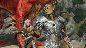 Upon approaching the patrol, the githyanki are arguing with a group of Flaming Fists. Suddenly, a red dragon comes down from the sky and sets the fists aflame. If Lae'zel is in the party, she notes that the crèche must be near and goes to meet with the patrol. If going with her a conversation is triggered with the dragon's rider, Kith'rak Voss. A more detailed overview of the conversations follows below: