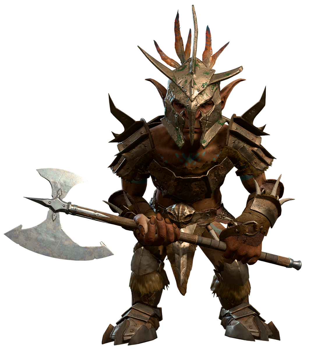 Warrior Puce is a goblin stationed at the checkpoint just before the entrance to the Goblin Camp during Act One.